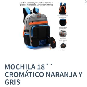• MOCHILA CROMATICO NARANJA Y GRIS 18″ 18874