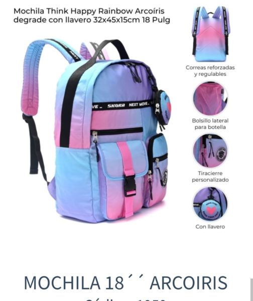 Mochila 18″ rosa celeste y lila skora 18669$55.600,00 1 in stock - + Add to cart SKU: 7790774428669 Category: MOCHILAS Related products Morral cuero con recorte $6.700,00 Add to cart Mochila perrito 18864 $14.400,00 Add to cart MOCHILA GATOS CON CANOPLA 58517 $31.000,00 Add to cart MOCHILA AFU CORAZON 51789 $27.200,00 Add to cart